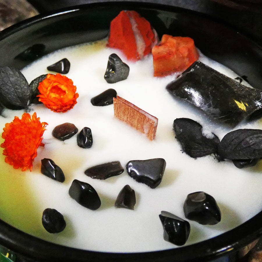 • Ingredienti: cera di soia, fragranze, pietre vere