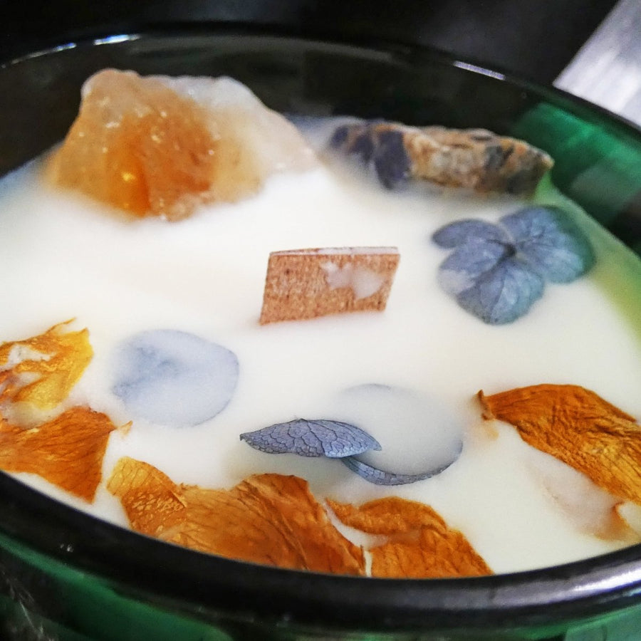 • Ingredienti: cera di soia, fragranze, pietre semipreziose