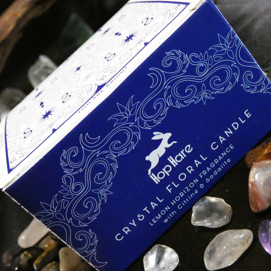 Candela Artigianale con Fiori e Pietre Hop Hare - Il Sole