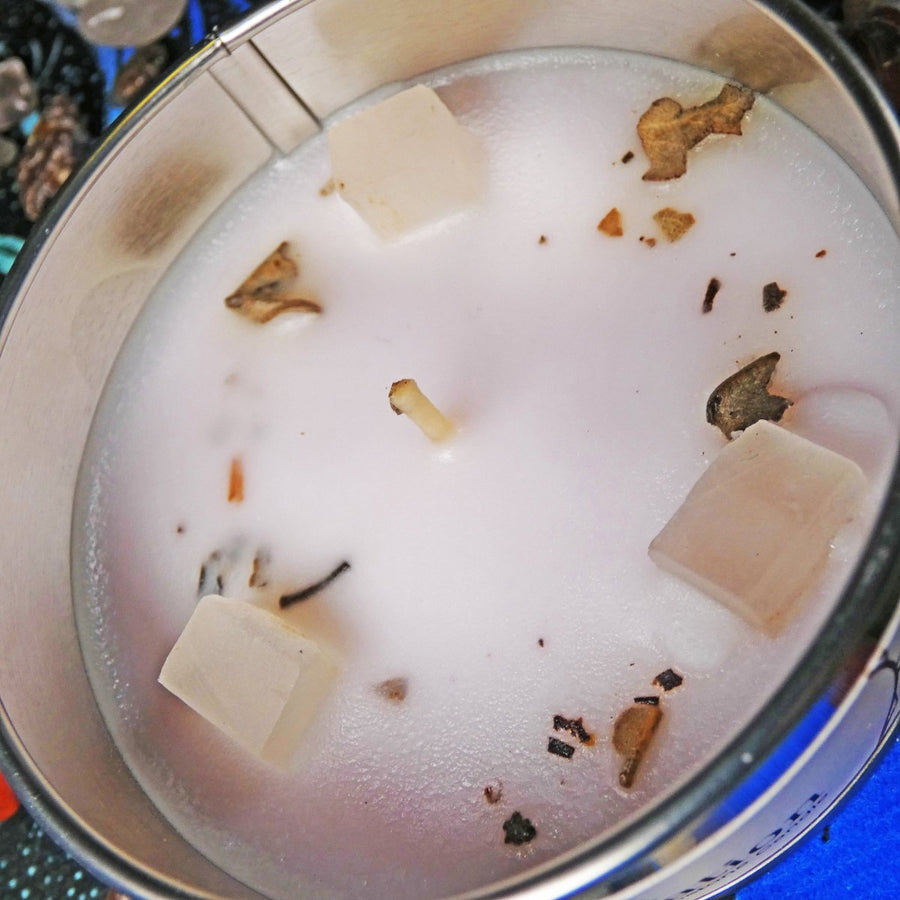 Candela Profumata Artigianale con Salvia Bianca e Selenite – Purificazione e Rinnovamento Energetico.