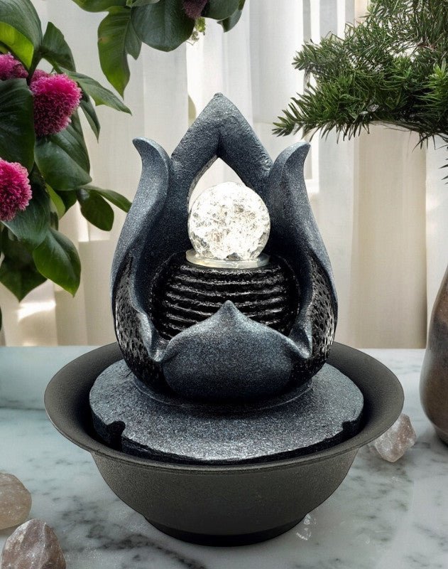 Coniuga estetica, simbolismo e benessere in un solo oggetto: la Fontana Zen con Fiore di Loto è molto più di un complemento d’arredo, è un invito quotidiano alla serenità.