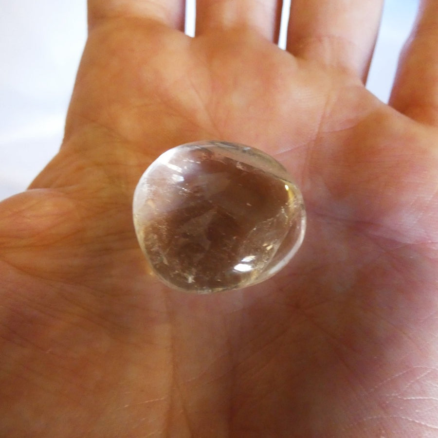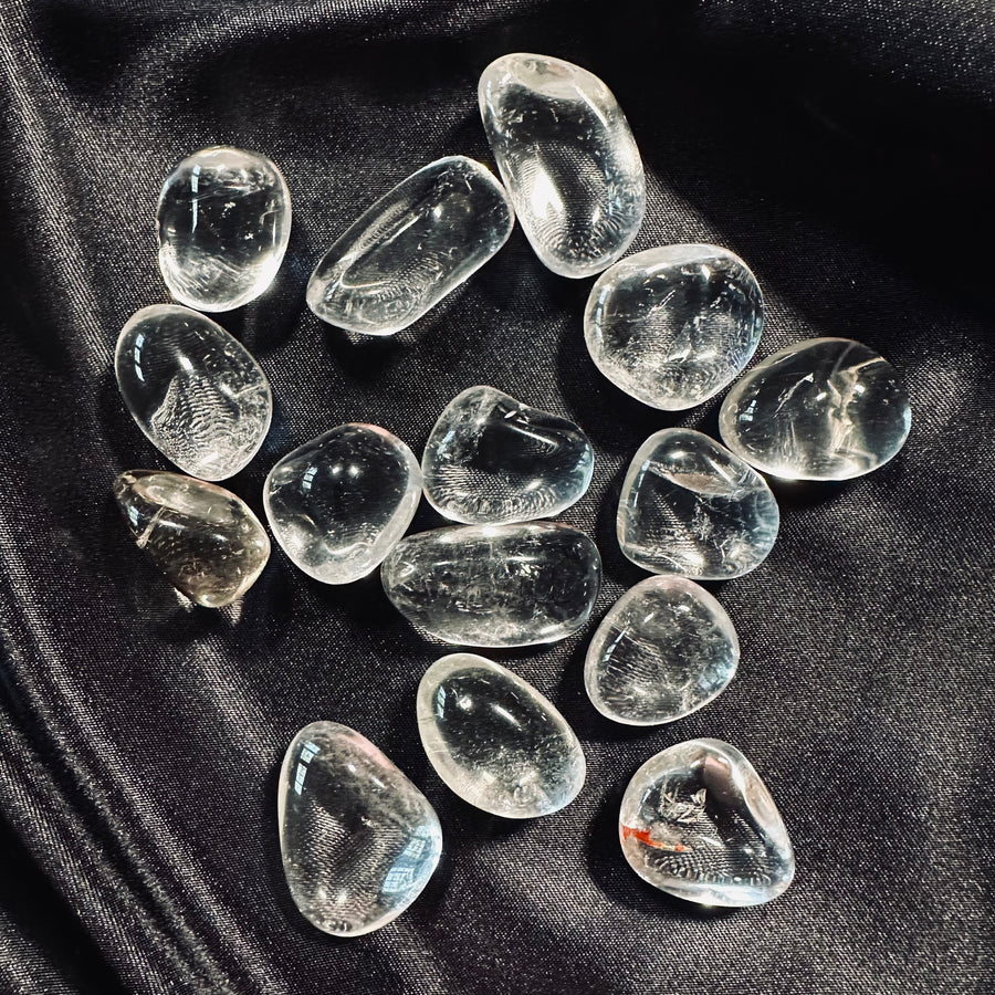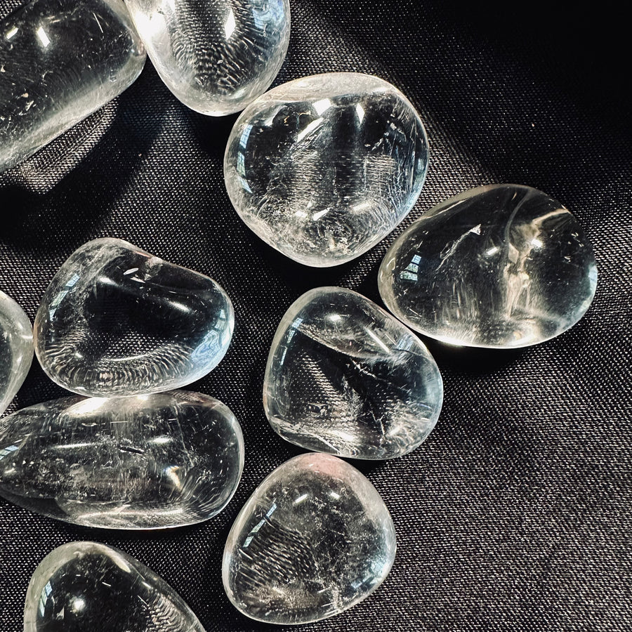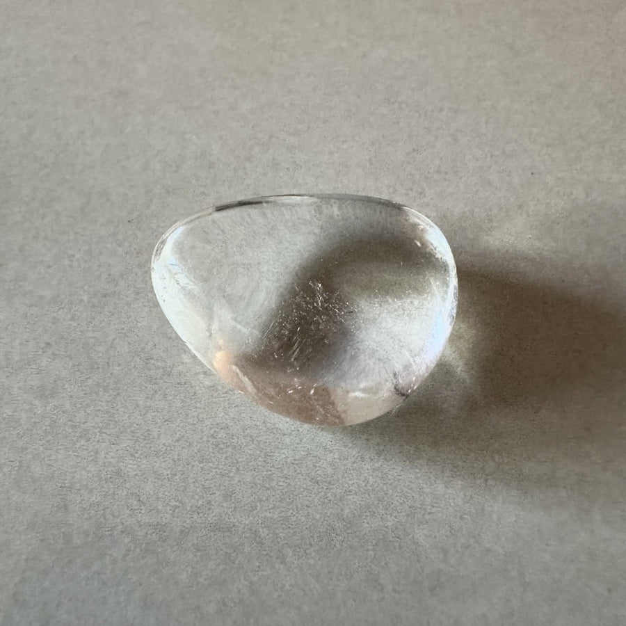 La burattatura del cristallo gli conferisce una superficie levigata ma irregolare, che mantiene la naturalezza della pietra esaltandone le venature interne e la trasparenza. Ogni esemplare è unico, con sfumature e inclusioni che raccontano la storia naturale del quarzo.