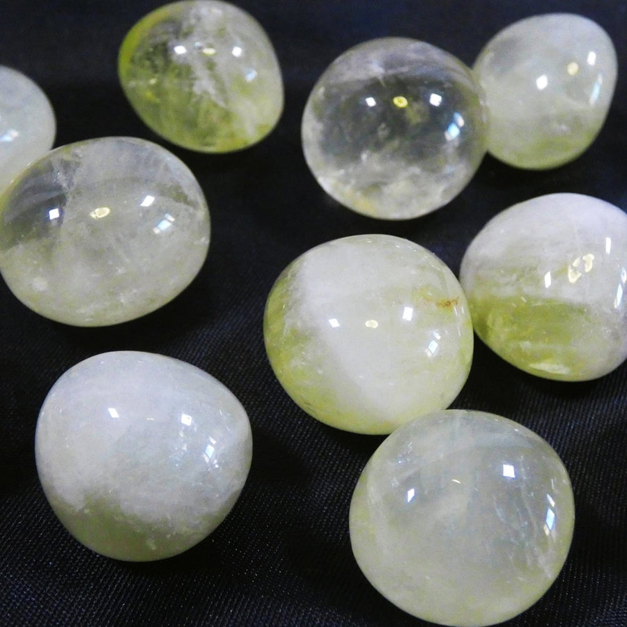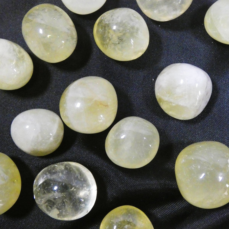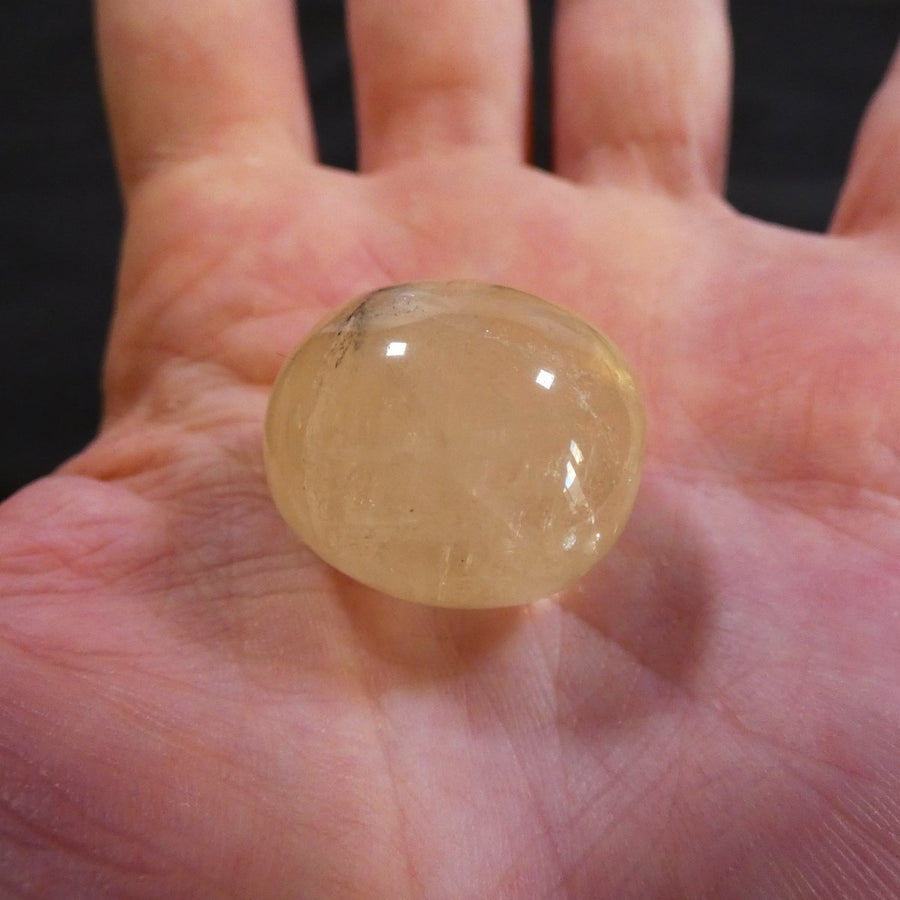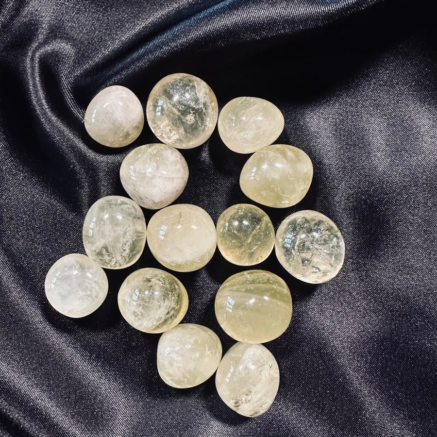 Ogni pietra misura circa 2,5-3 cm e presenta una superficie liscia e lucida, ottenuta tramite un accurato processo di burattamento. Il colore brillante e caldo varia da giallo chiaro a dorato intenso, con leggere trasparenze che ne esaltano la bellezza naturale.