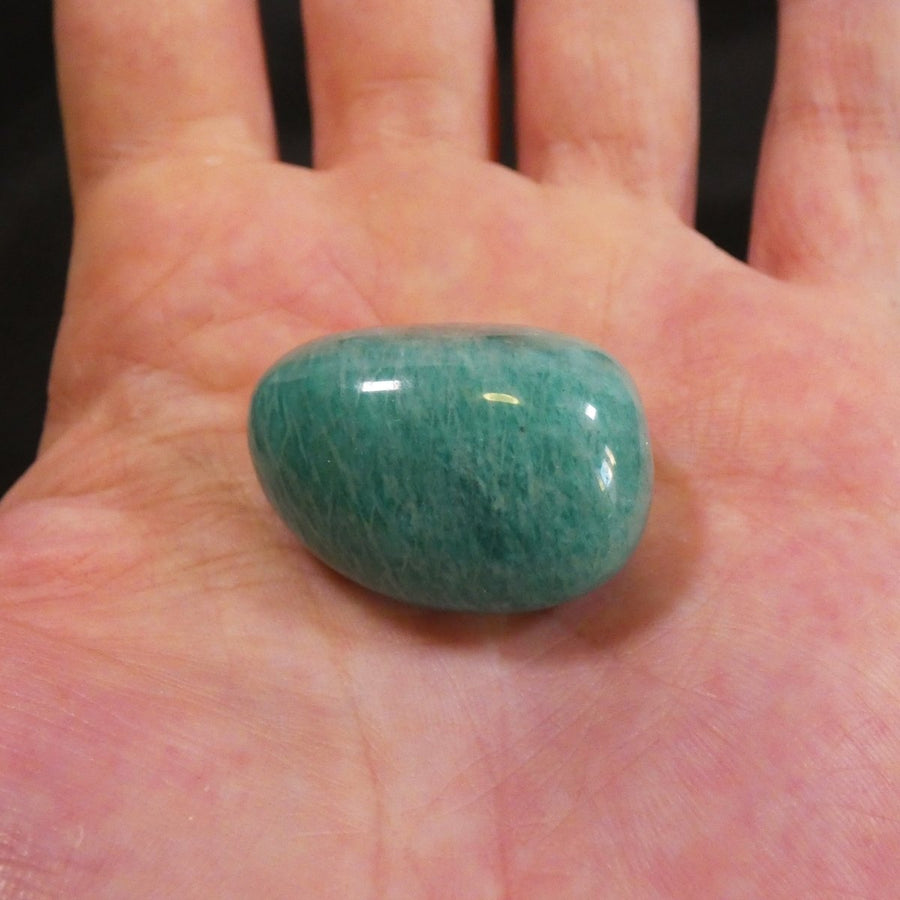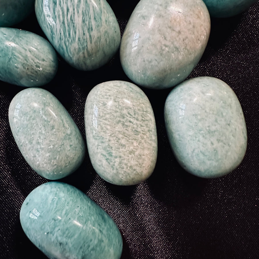 Il colore verde-blu intenso dell’Amazzonite è uno dei suoi tratti più distintivi: trasmette immediatamente una sensazione di pace e connessione con la natura. La pietra viene levigata per ottenere una superficie liscia e lucida, rendendola piacevole al tatto e visivamente affascinante.