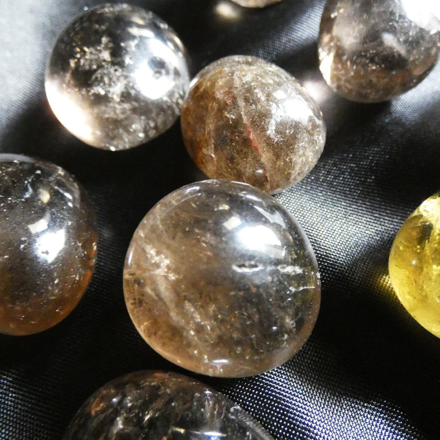 Scopri il fascino e la potenza energetica del Quarzo Fumé burattato, una pietra naturale dalle sfumature che vanno dal marrone chiaro al grigio scuro quasi nero. Questo colore unico è il risultato di tracce di alluminio irradiate naturalmente, rendendo ogni pezzo un esemplare speciale e carico di vibrazioni sottili. Con una dimensione compatta di circa 2,5-3 cm, il quarzo è perfetto da portare sempre con sé o da usare nei tuoi momenti di meditazione e centratura.