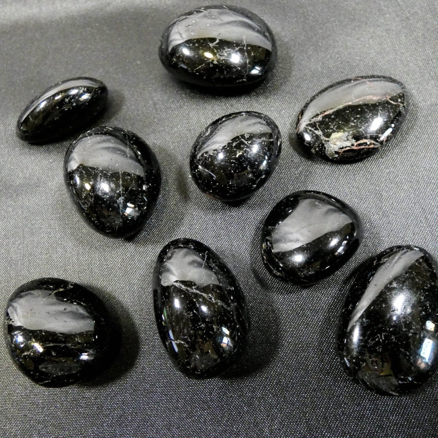 Nota per il suo colore nero profondo e la superficie lucida, questa pietra levigata non è solo funzionale, ma anche esteticamente affascinante. Al tatto è liscia e compatta, perfetta da tenere in tasca, nel palmo durante le meditazioni o come elemento decorativo in uno spazio personale.