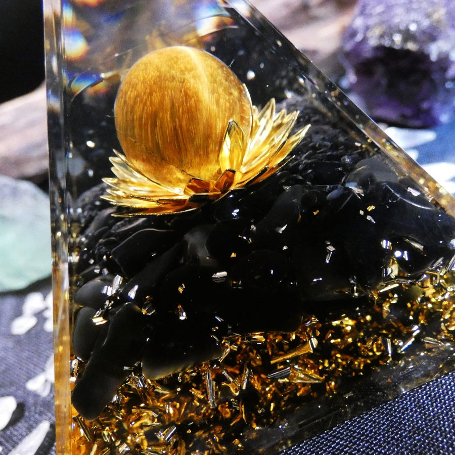 In sintesi, la Piramide di Orgonite con Occhio di Tigre, Ossidiana Nera e Fiore di Loto è un concentrato di bellezza e potere: un oggetto spirituale capace di armonizzare, proteggere e ispirare ogni giorno.
