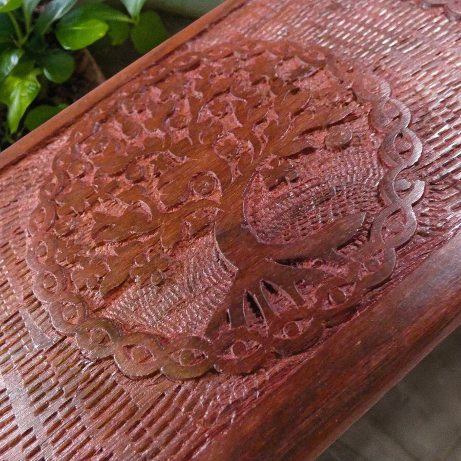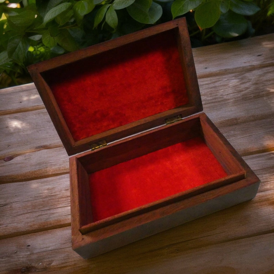 Il coperchio è decorato con un intaglio accurato dell’Albero della Vita, simbolo universale di connessione, forza e crescita interiore. I dettagli intagliati lungo i bordi aggiungono ulteriore pregio e profondità estetica, rendendo ogni scatola un pezzo unico e significativo.