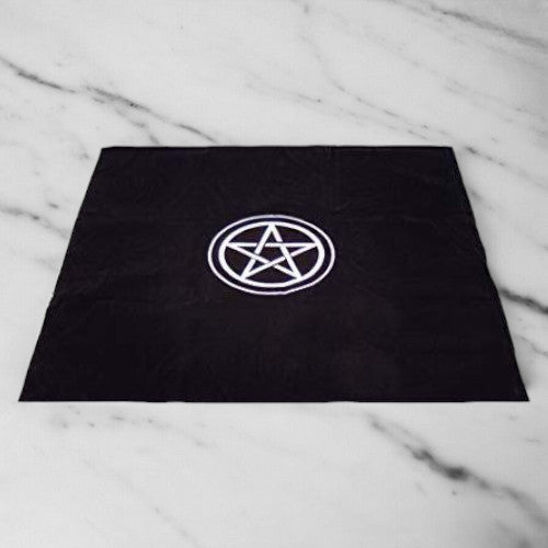 Realizzato in velluto di alta qualità, questa tovaglia offre una superficie soffice e accogliente, perfetta per sedersi durante le pratiche contemplative o come base per l’altare personale. Il protagonista del design è l’intricato ricamo del Pentacolo, simbolo esoterico per eccellenza, rappresentazione dell’equilibrio tra gli elementi naturali (Terra, Aria, Fuoco, Acqua e Spirito) e della protezione energetica.