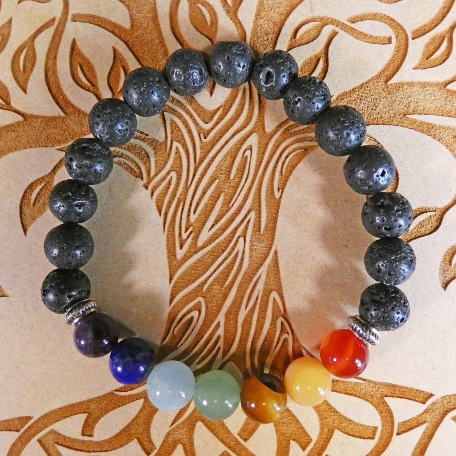 Bracciale Pietra Lavica & 7 Chakra (perle ±8 mm)