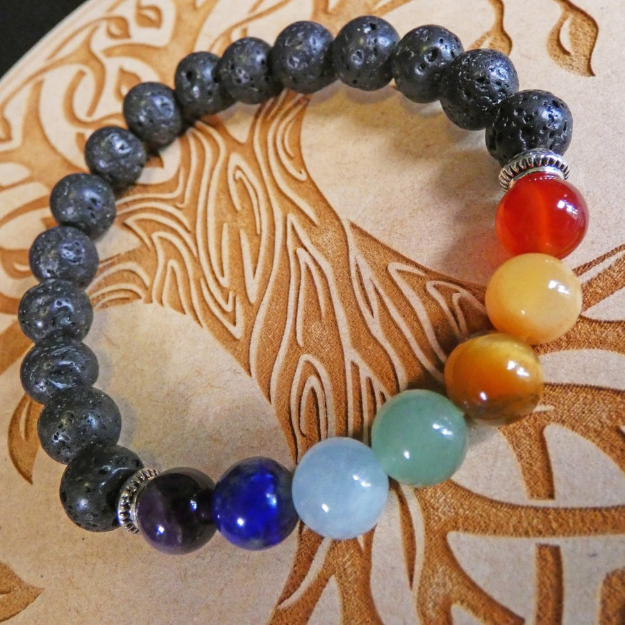 Questo bracciale in Pietra Lavica e 7 Chakra è un affascinante accessorio spirituale che unisce forza, colore e simbolismo. Le perle da 8mm in Pietra Lavica nera, con la loro texture porosa e grezza, evocano l’energia primordiale della terra e donano al bracciale un’estetica autentica e maschile, ma perfettamente unisex. Le perle colorate associate ai sette chakra principali creano un elegante contrasto visivo, rendendolo un gioiello carico di significato.