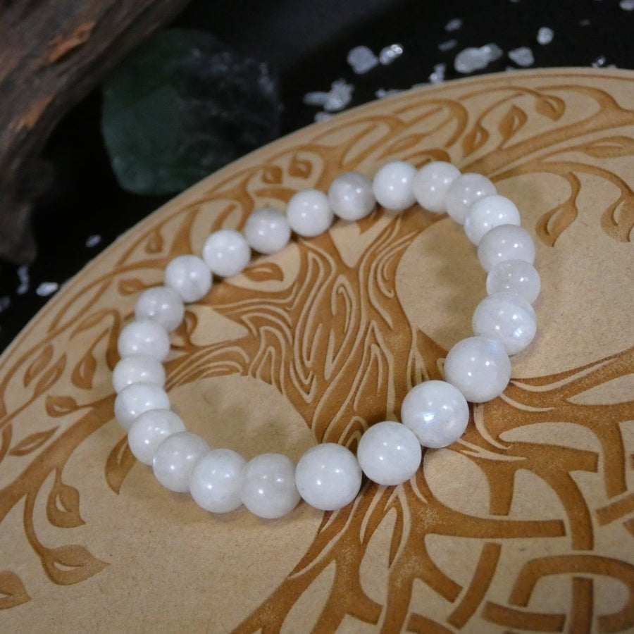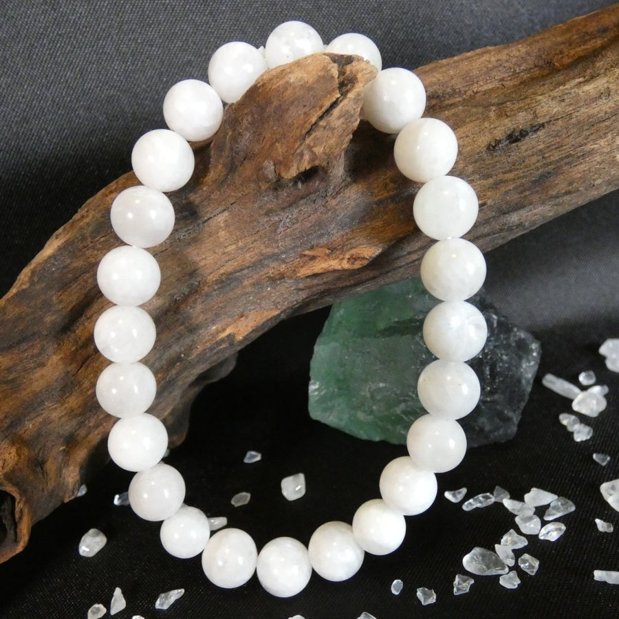Bracciale Pietra di Luna Bianca Adularia Qualità AA (perle ±8 mm)