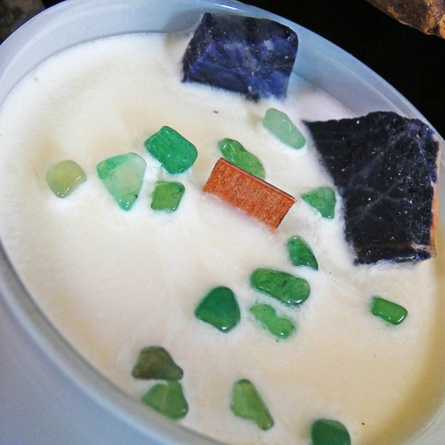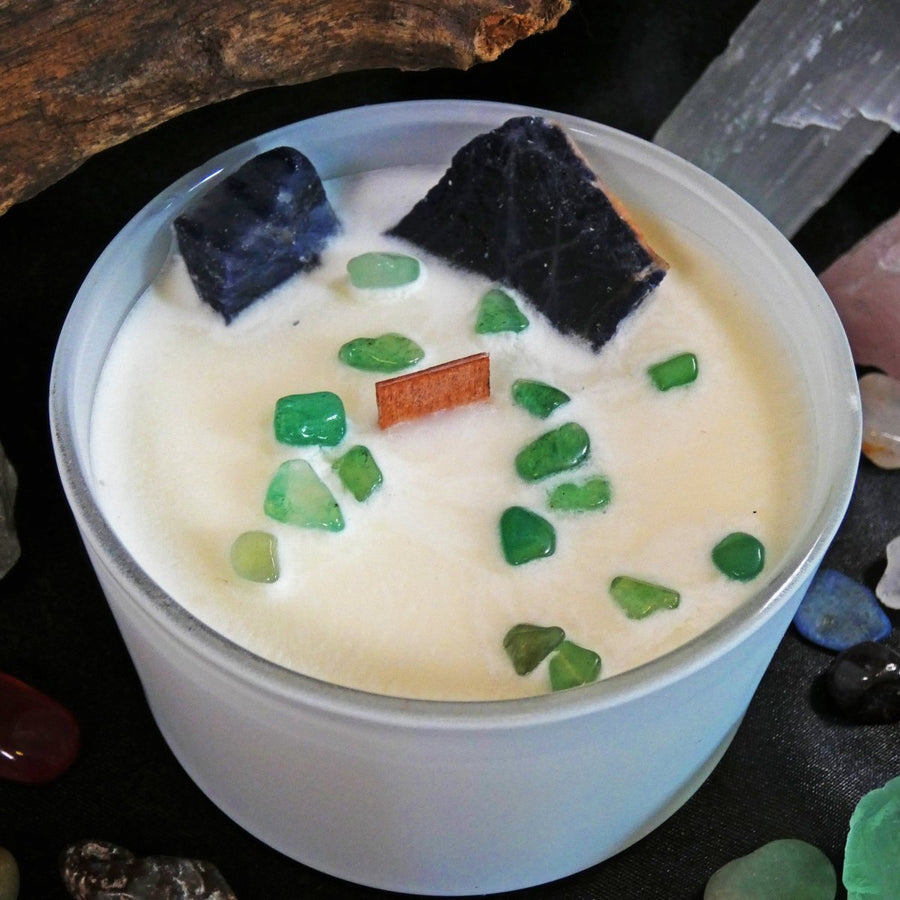 La Candela Chakra Gola con Sodalite e Giada è pensata per armonizzare il 5° Chakra (Vishuddha), legato alla comunicazione, alla verità e all’espressione autentica di sé. Il contenitore bianco elegante racchiude una candela dalla superficie decorata con vere pietre semipreziose, che donano energia e bellezza al tempo stesso.