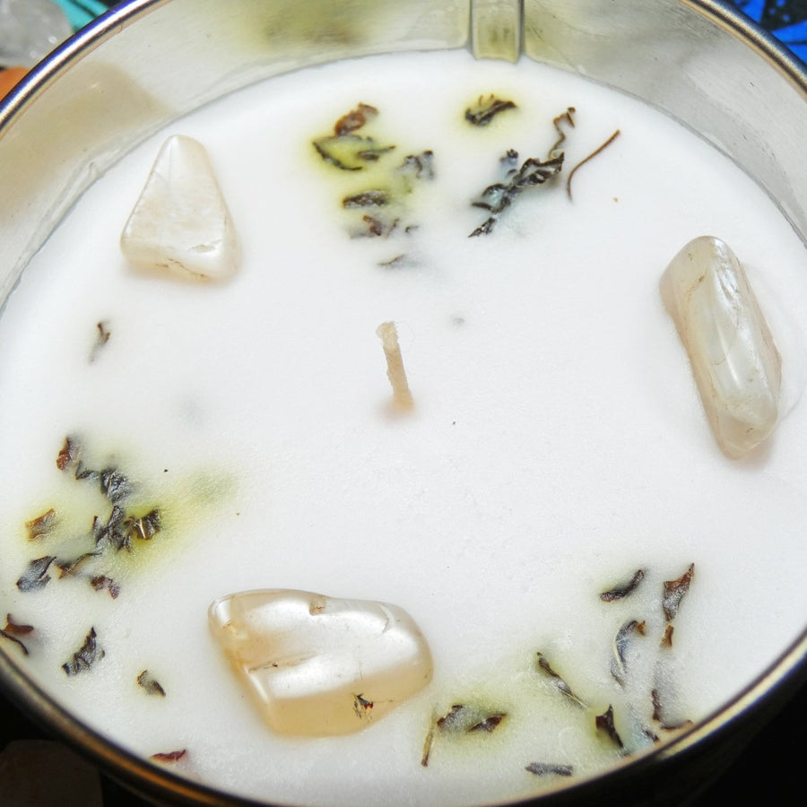Questa candela unisce fragranze fresche e purificanti con l’energia intuitiva della pietra di luna, per guidarti verso una profonda crescita personale: