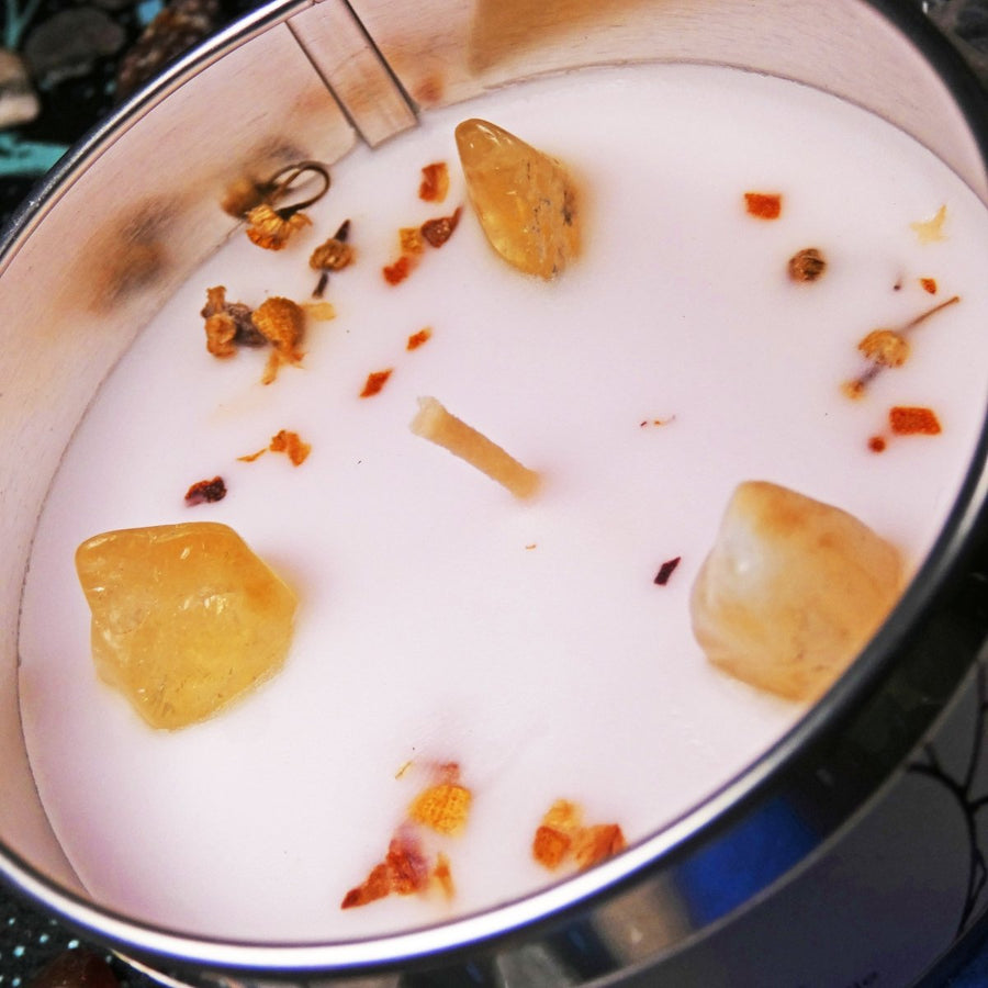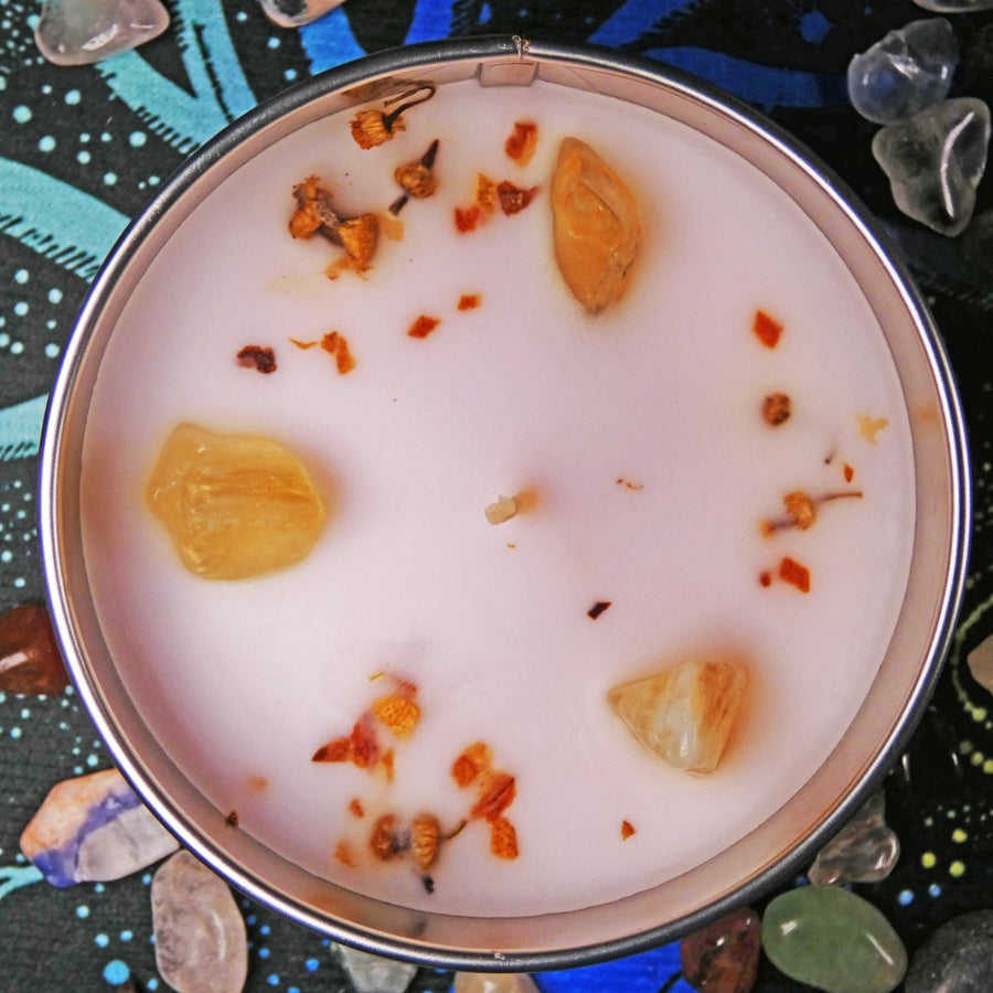 Questa candela artigianale, con il potere energizzante del citrino e gli aromi freschi e rilassanti di tè verde, limone e camomilla, è perfetta per chi cerca una fonte di benessere e armonia nella propria casa. Ideale per sé o come dono simbolico di luce e positività.