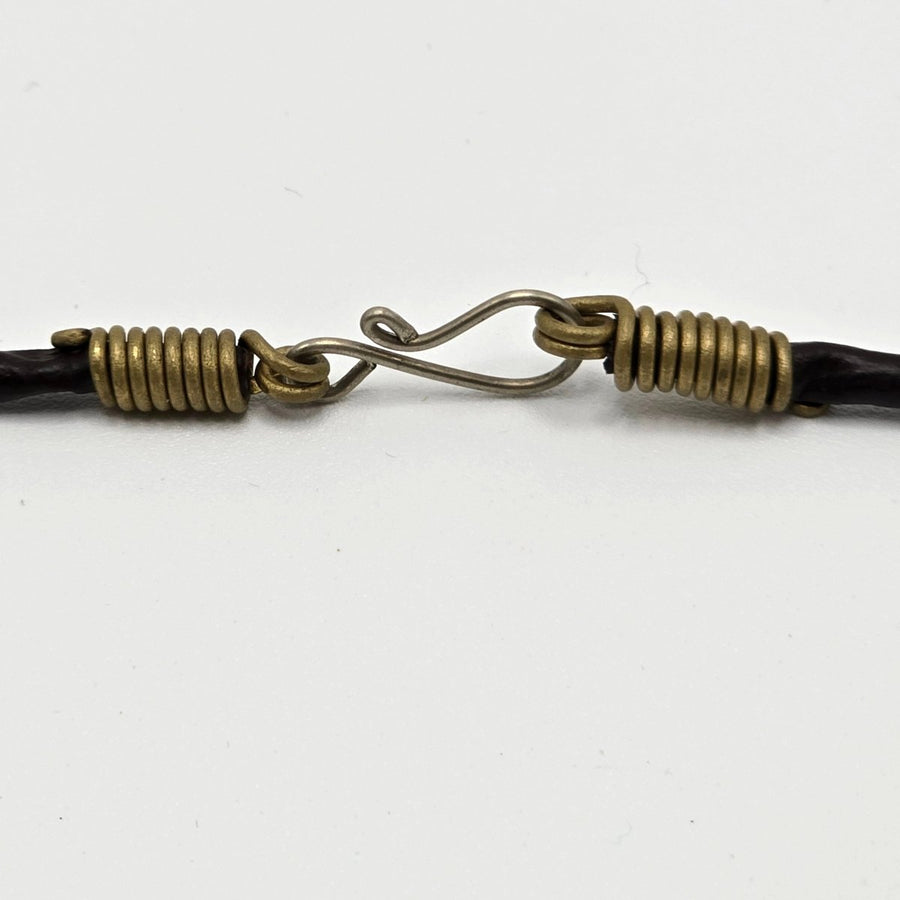 La lavorazione artigianale rende ogni collana un pezzo unico, caratterizzato da dettagli che ne esaltano l’eleganza e l’originalità. Il pendente è accompagnato da un cordino in cuoio italiano di alta qualità, morbido e resistente, completato da una chiusura in metallo che garantisce un effetto coordinato e sofisticato.