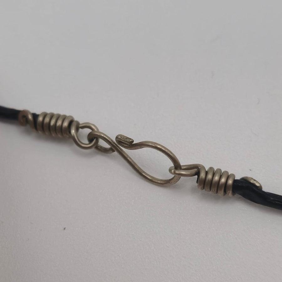 Completata da un laccetto in cuoio italiano di alta qualità, con chiusura in metallo coordinata, questa collana è pensata per chi ama distinguersi con stile e autenticità.