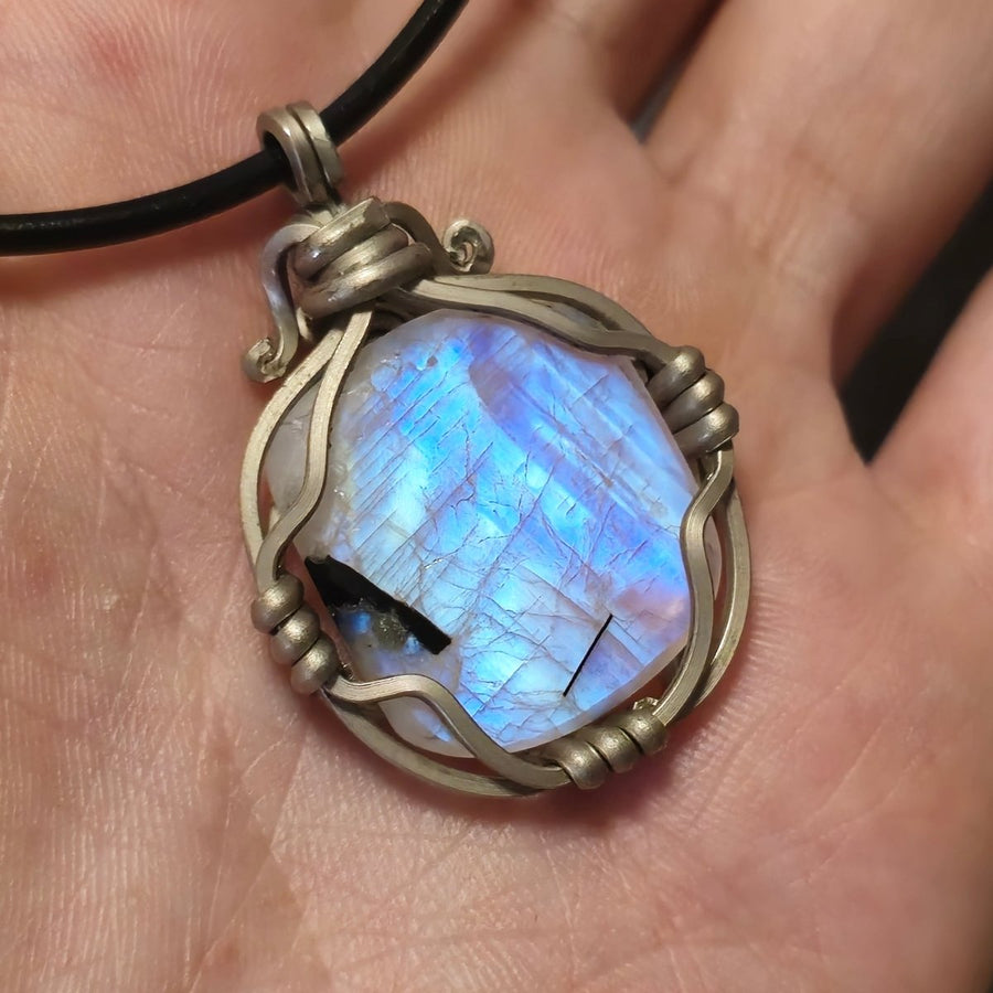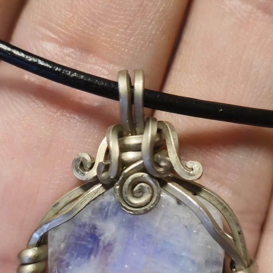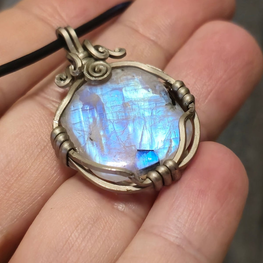 Un gioiello raffinato e senza tempo, realizzato interamente a mano: questa collana presenta un ciondolo in Labradorite Bianca del Canada di qualità extra AAA, una pietra luminosa e ricca di riflessi cangianti, che trasmette eleganza e profondità.