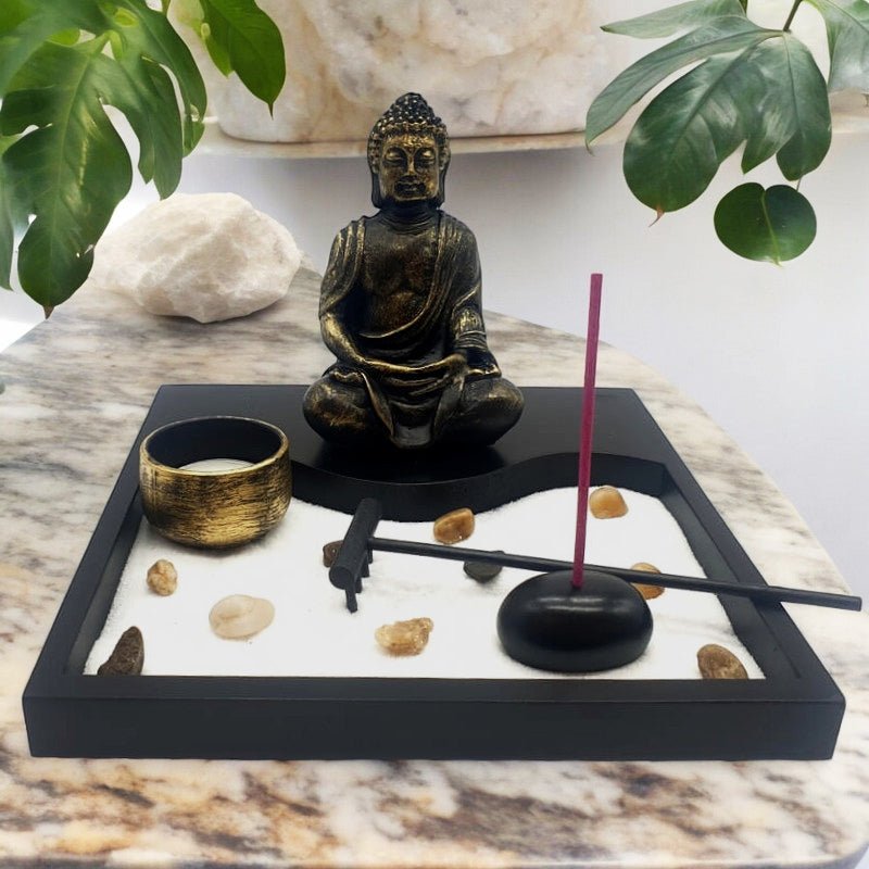 Ideale per chi pratica la meditazione, per chi cerca un momento di raccoglimento quotidiano o semplicemente desidera un oggetto decorativo dal significato profondo, questo giardino Zen è anche una splendida idea regalo per amici, parenti o colleghi. La presenza del Buddha rende l’insieme non solo esteticamente piacevole, ma anche profondamente simbolico.
