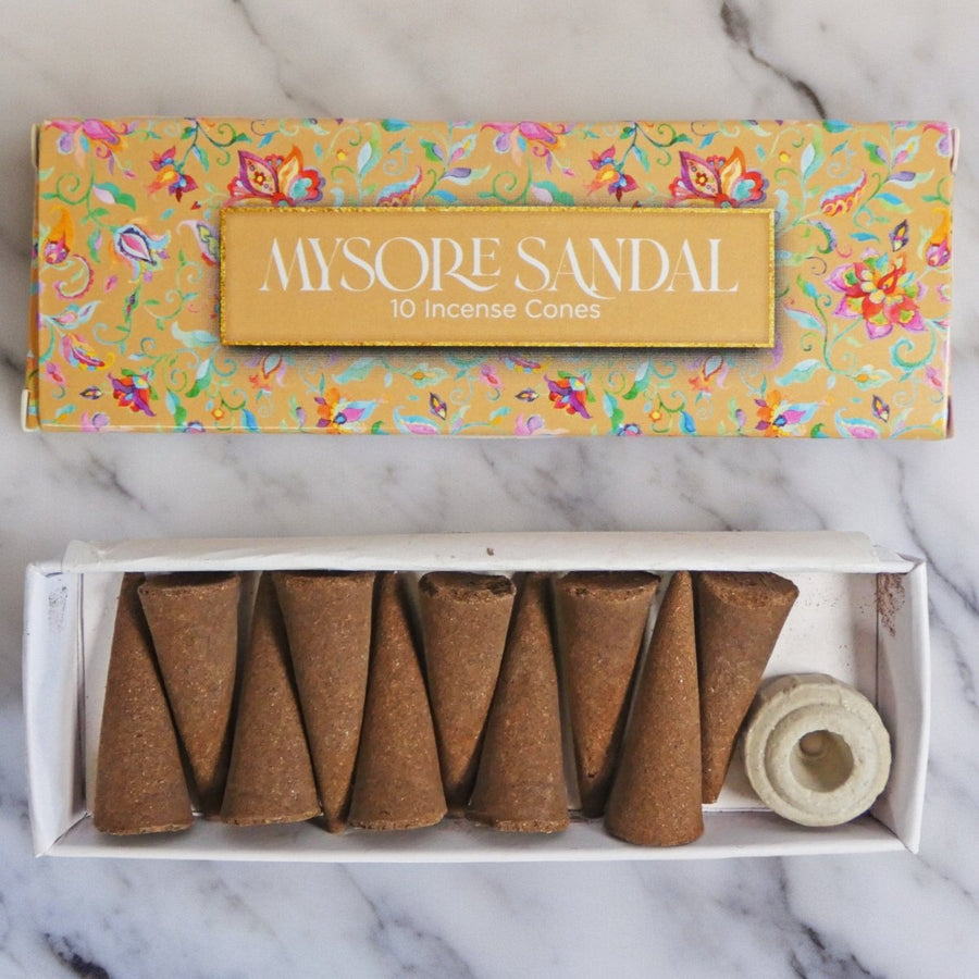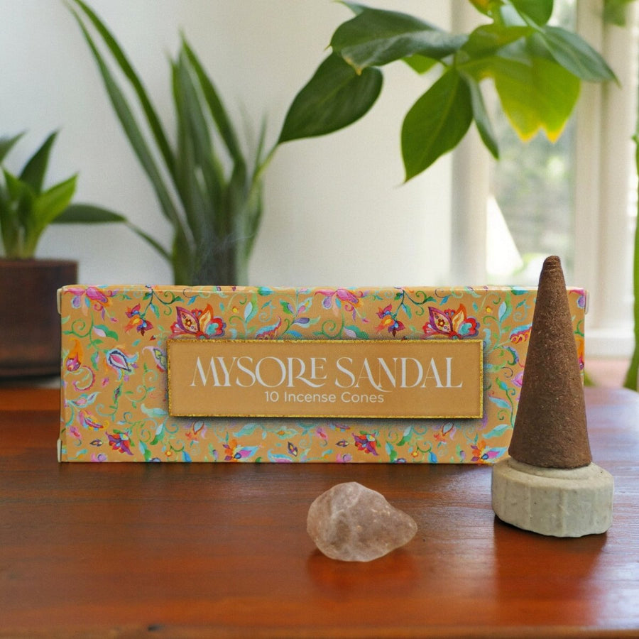 Ogni cono è realizzato artigianalmente con ingredienti naturali di alta qualità, per garantire una combustione uniforme e un aroma intenso ma equilibrato. La fragranza del sandalo di Mysore si distingue per le note dolci, terrose e persistenti, capaci di creare un ambiente di calma e bellezza naturale. Il profumo riempie la stanza con una sensazione di sacralità, favorendo il rilassamento e la concentrazione mentale.