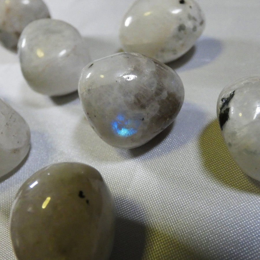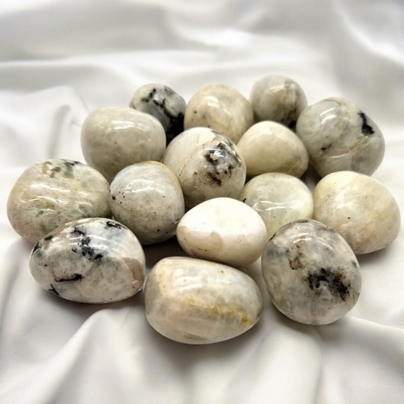 Materiale: Labradorite bianca naturale, burattata a mano.