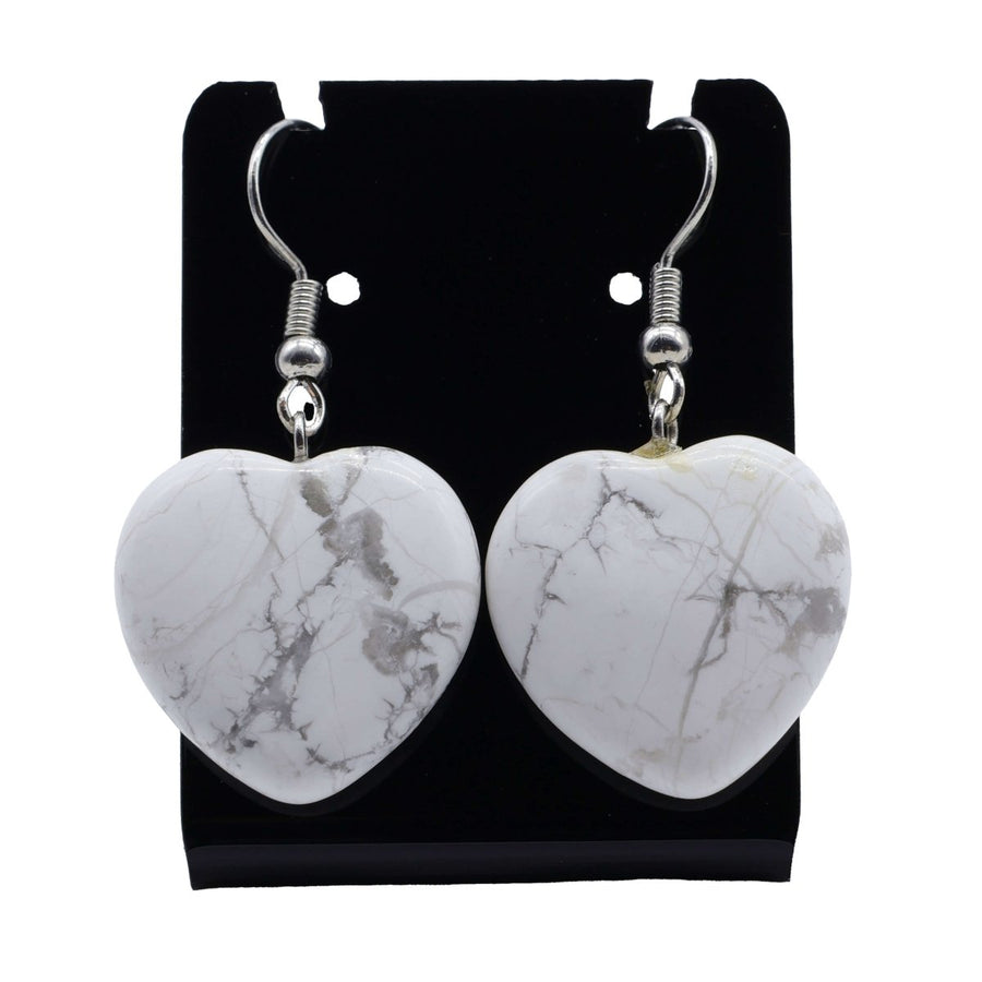 Il design a cuore è impreziosito da un’howlite naturale, nota per la sua superficie bianca attraversata da delicate venature grigie. Ogni pietra è unica, lavorata con cura per esaltarne la texture e donare a ogni paio di orecchini un effetto visivo armonioso e delicato. La forma romantica e il colore neutro li rendono facilmente abbinabili a ogni stile, dal casual all’elegante.