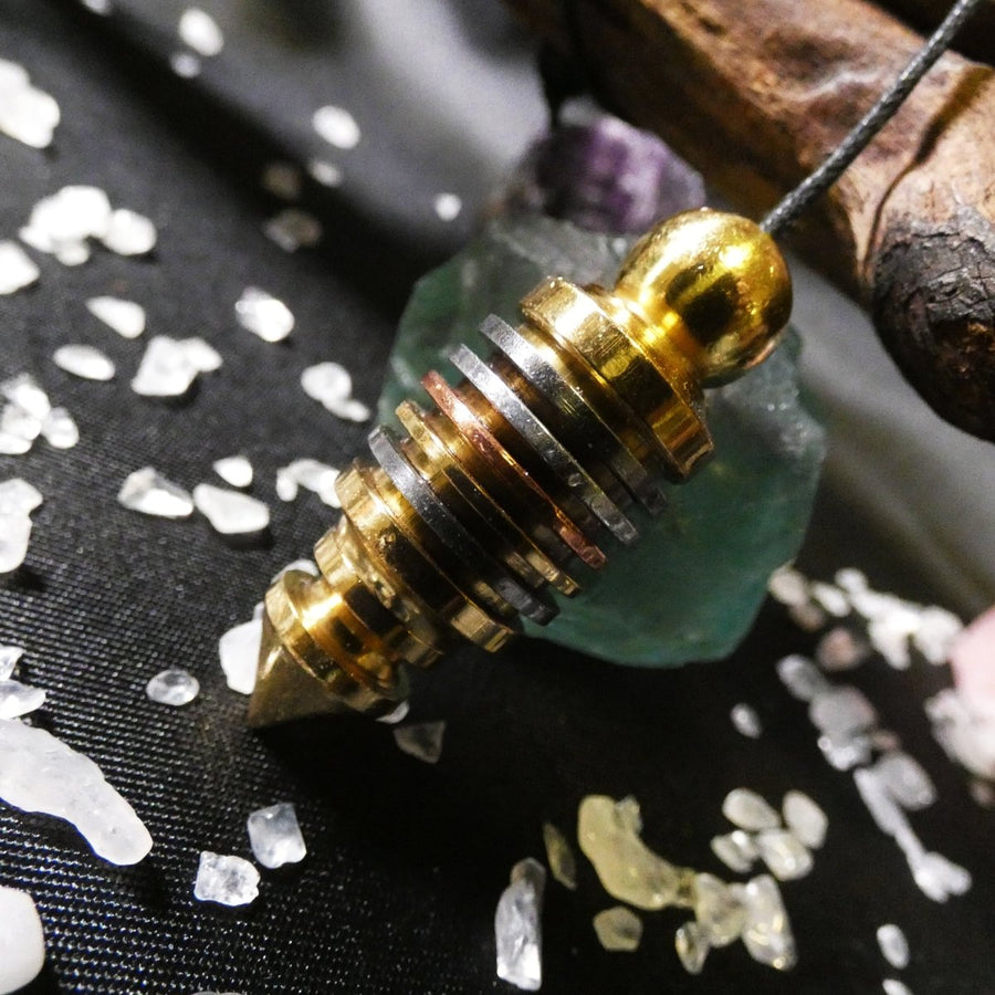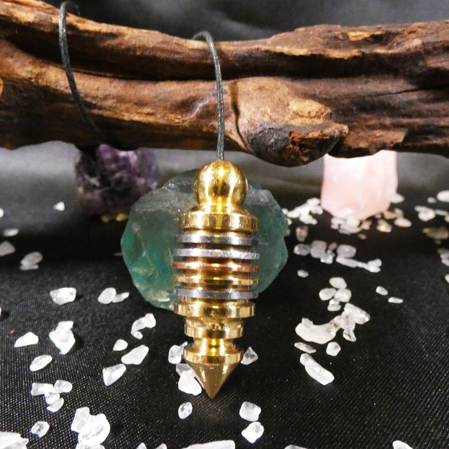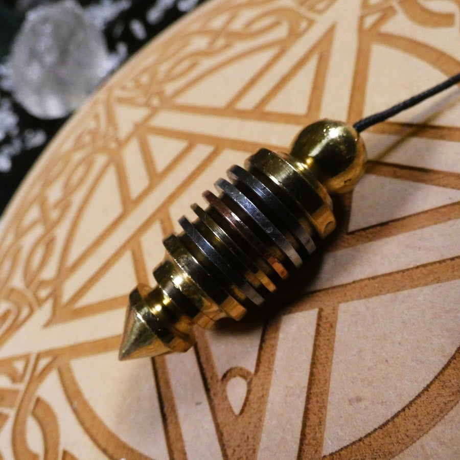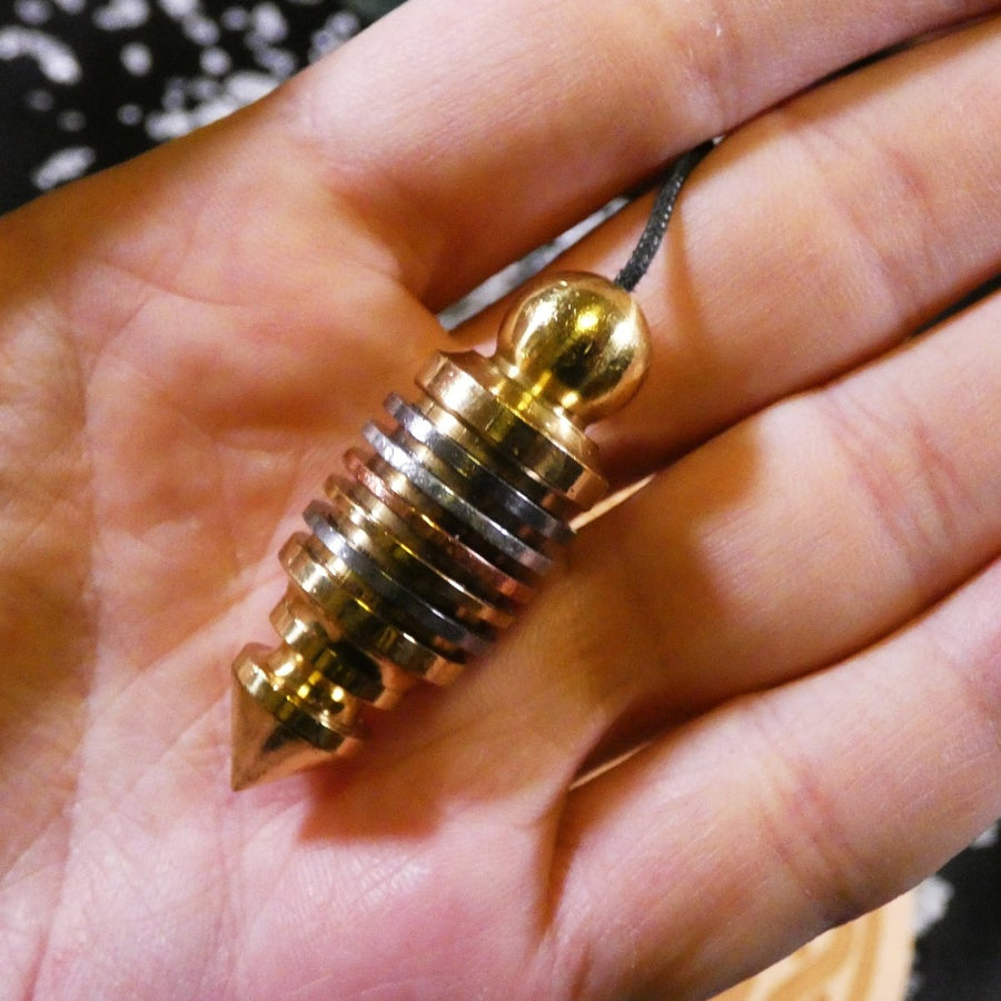 Ogni metallo utilizzato in questo pendolo contribuisce con caratteristiche energetiche specifiche. Il rame stimola la conduzione dell’energia, l’ottone favorisce il radicamento e la stabilità, mentre altri metalli completano l’insieme con qualità protettive, riequilibranti o amplificanti. Questo lo rende adatto a chi cerca uno strumento completo e poliedrico.