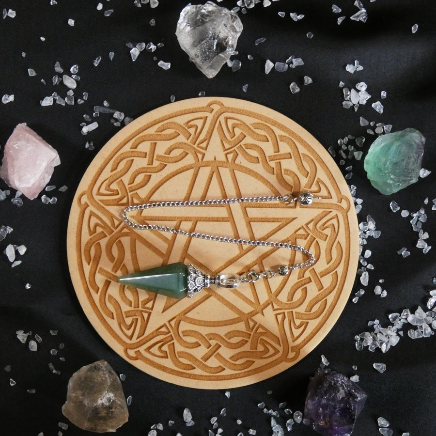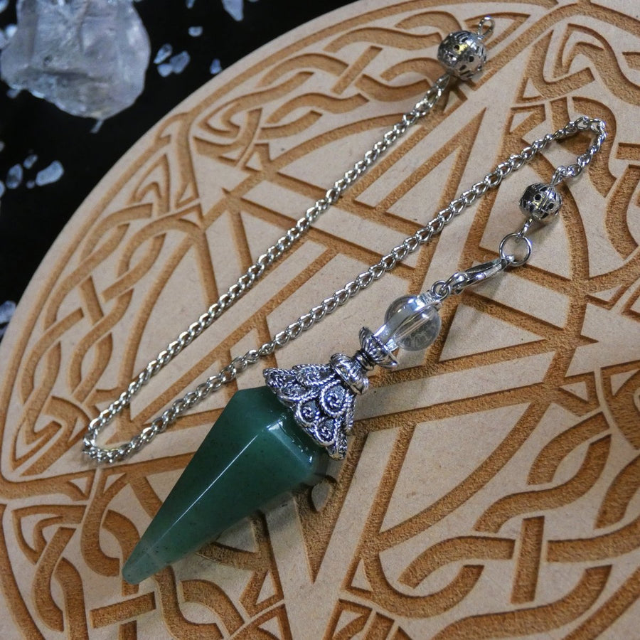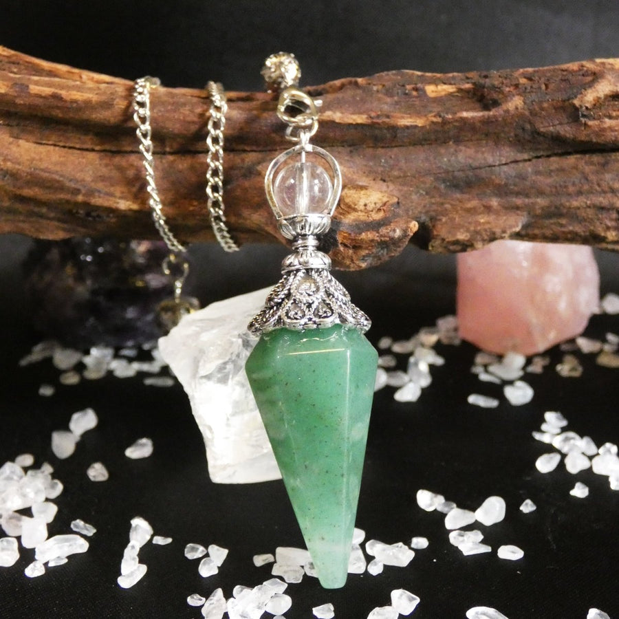 L’avventurina verde è associata al chakra del cuore e conosciuta per le sue proprietà calmanti, rigenerative e riequilibranti. Questa pietra favorisce la guarigione emotiva, stimola la crescita personale e aiuta a rilasciare stress e ansia. Il metallo, oltre a rendere il pendolo resistente e ben bilanciato, potenzia la stabilità durante l’uso, migliorando la sensibilità e la precisione nella ricezione energetica.
