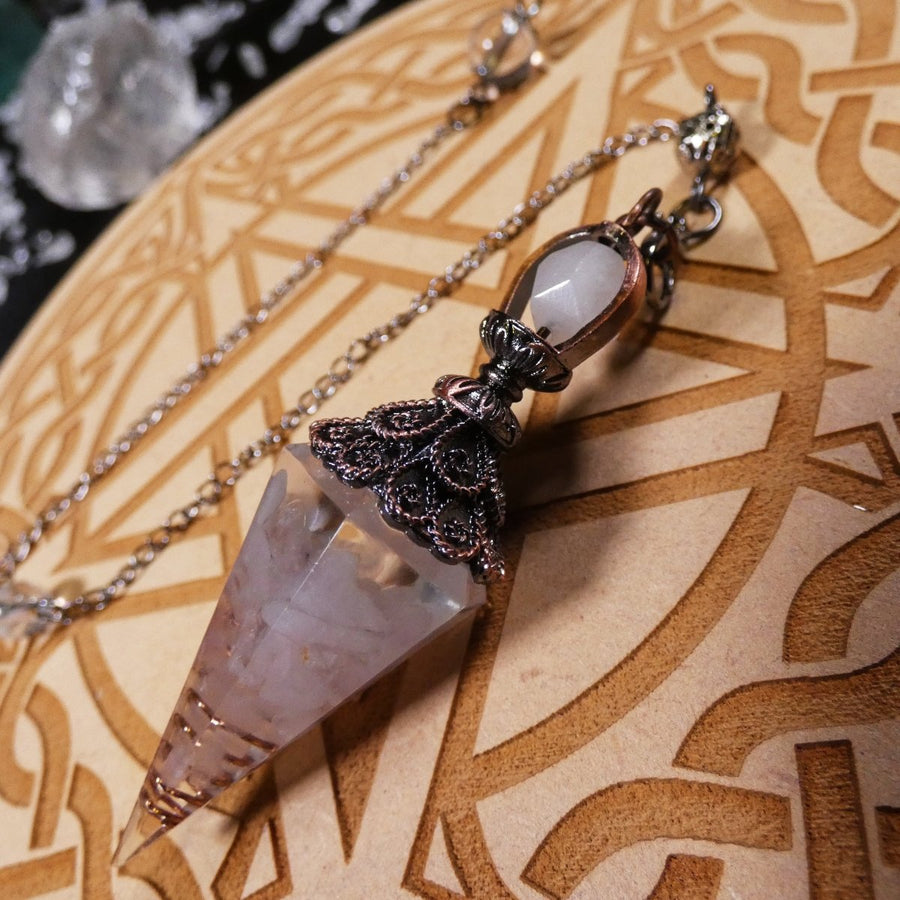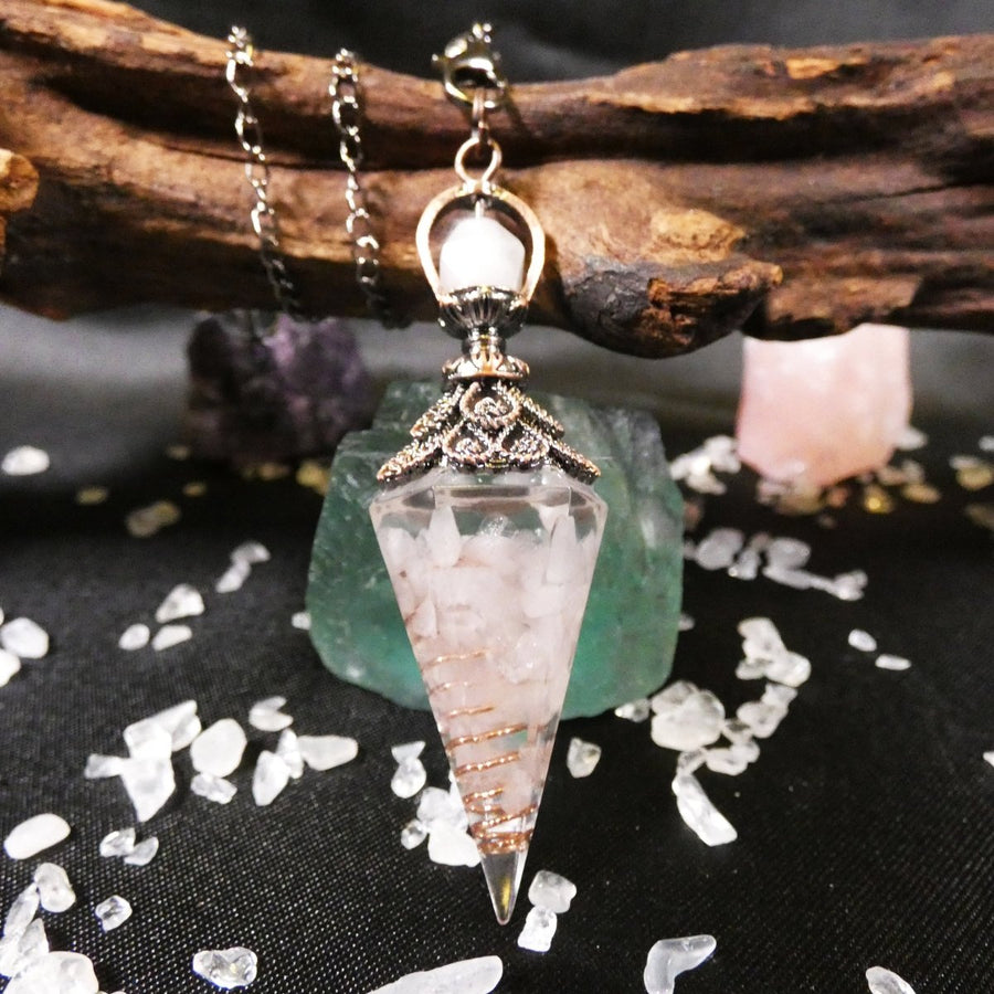 Pendolo in Orgonite e Quarzo Rosa con Spirale