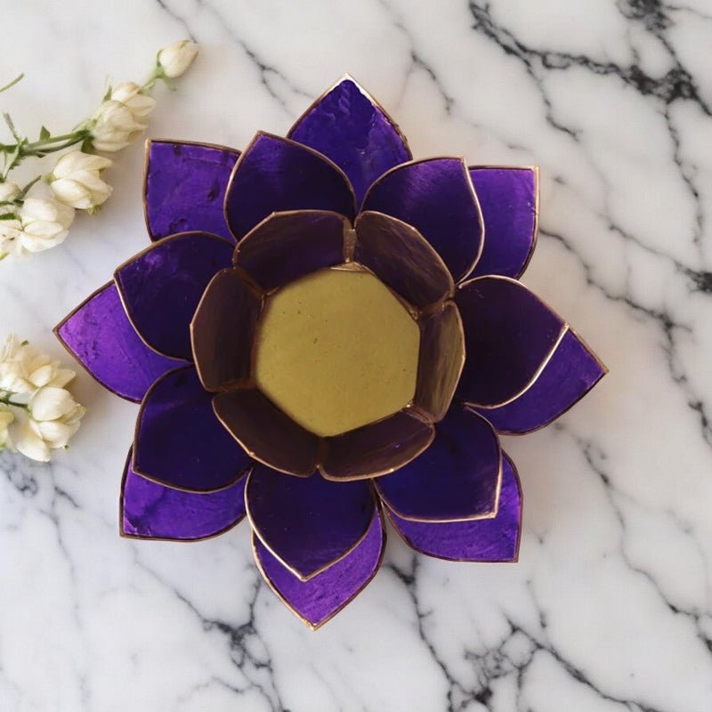 Con una forma ispirata al fiore di loto, simbolo di illuminazione e purezza, il design di questo portacandela riflette perfettamente l’energia del 7° Chakra – il Chakra della Corona (Sahasrara). Situato alla sommità della testa e associato al colore viola, questo chakra rappresenta la connessione con l’universo, la consapevolezza superiore e la spiritualità.