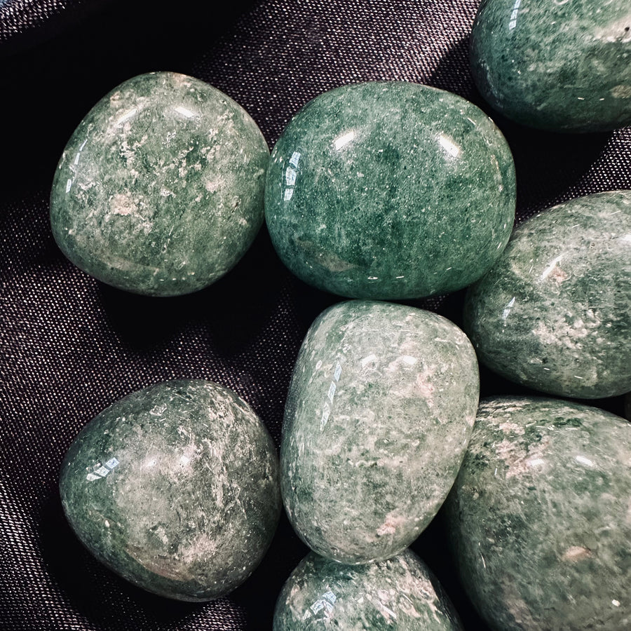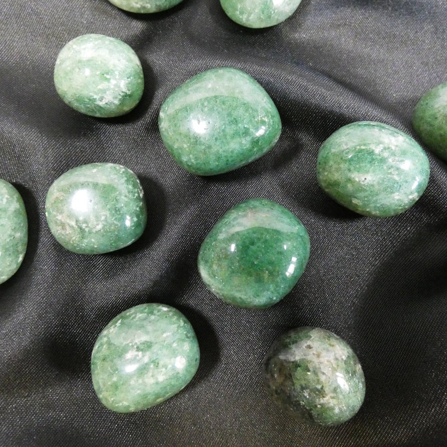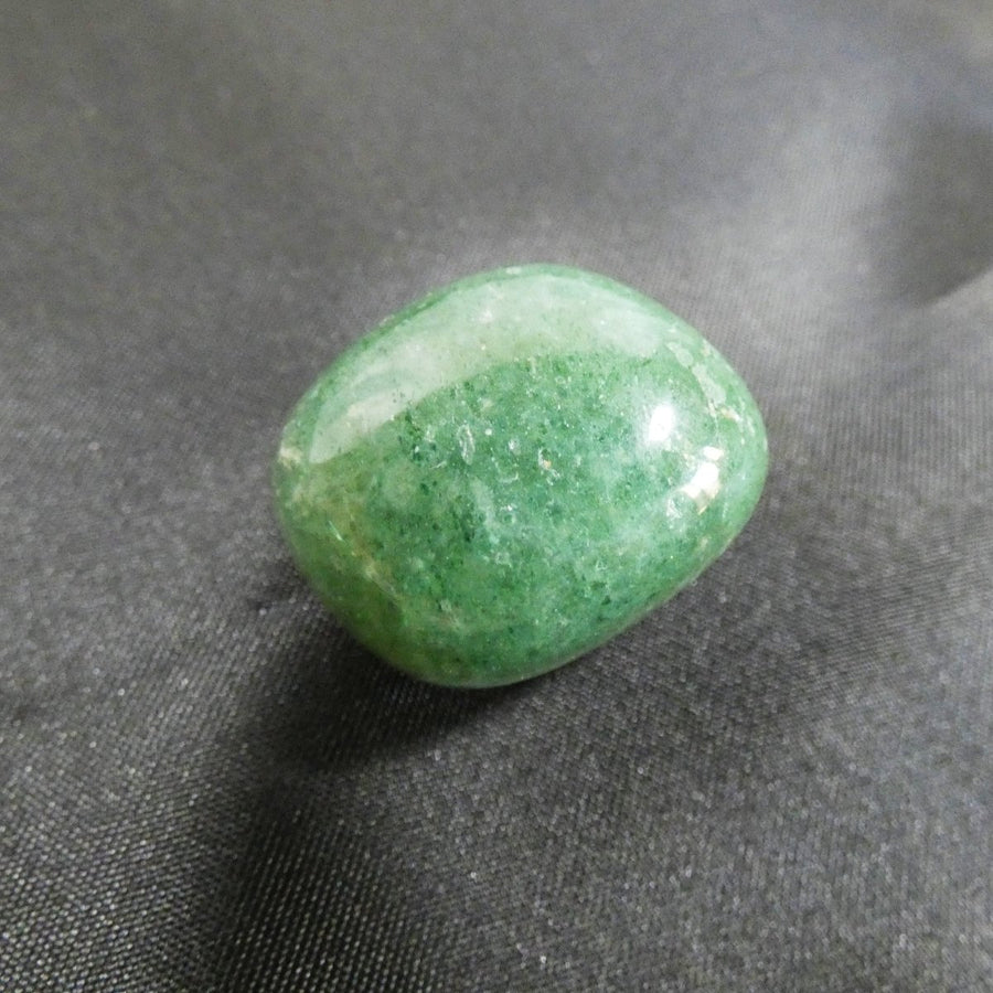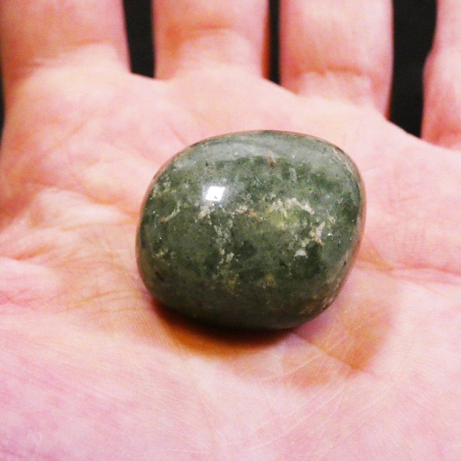 La pietra si distingue per il suo tono verde chiaro arricchito da piccole inclusioni puntinate, che ricordano visivamente i semi di una fragola. Questa caratteristica unica la rende particolarmente decorativa, oltre che utile dal punto di vista energetico. La superficie liscia e lucida ottenuta attraverso la burattatura esalta il suo colore naturale e la rende piacevole al tatto.