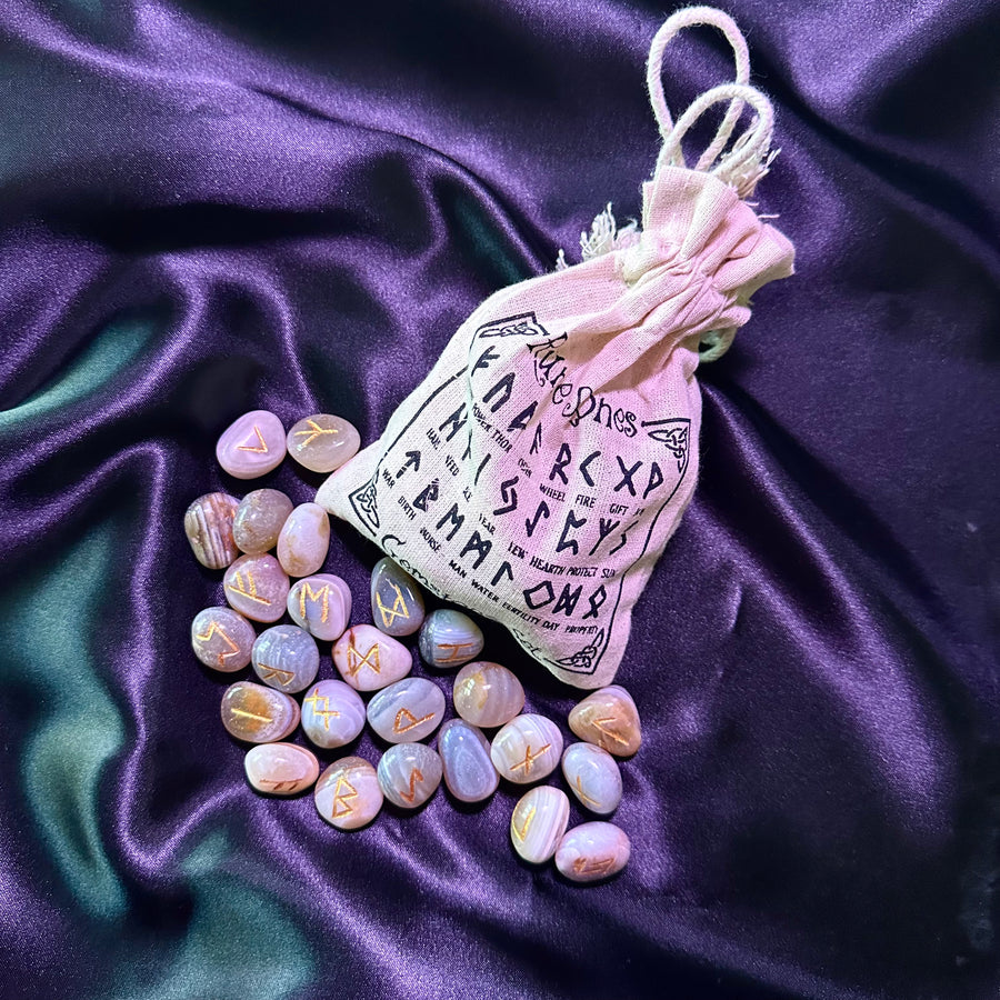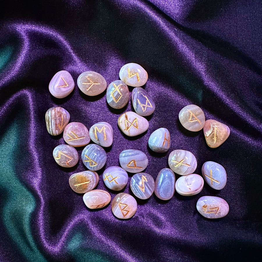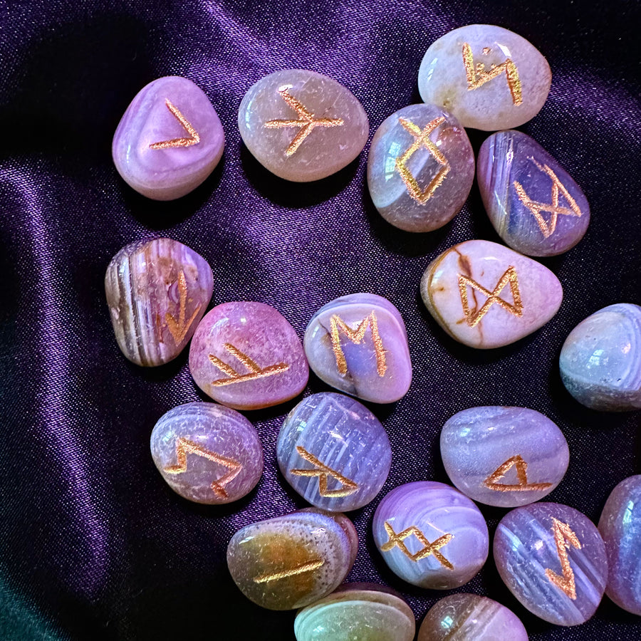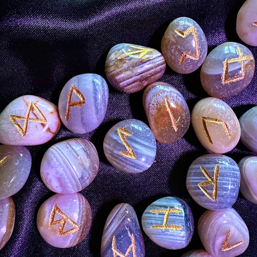 Ogni runa è realizzata in Agata a Bande di altissima qualità, una pietra caratterizzata da striature e colori naturali che rendono ogni pezzo unico. L’agata è rinomata per le sue proprietà di stabilizzazione e protezione, contribuendo a rafforzare il radicamento e la sicurezza emotiva. Le sue vibrazioni armonizzanti aiutano a bilanciare mente e spirito, rendendola perfetta per lavori energetici profondi.