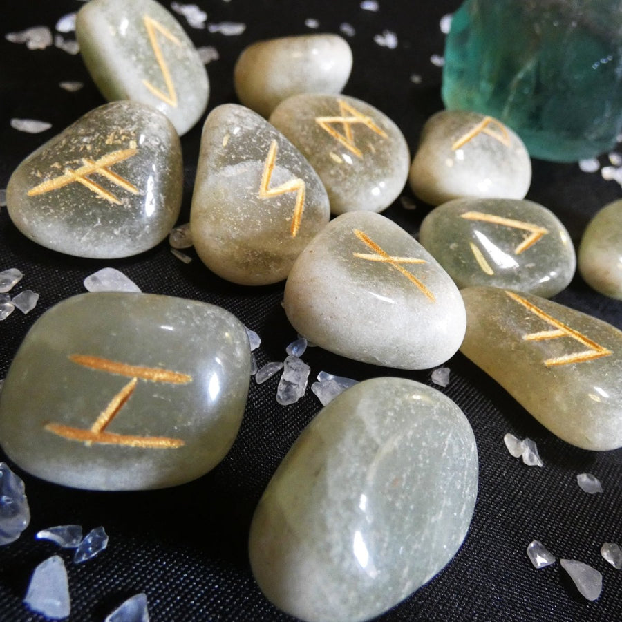 Scopri il potere simbolico e terapeutico delle Rune in Avventurina Verde, un set di 25 pietre naturali incise a mano secondo l'antico alfabeto Futhark. Ogni pietra è unica, levigata e decorata con cura artigianale per offrire un’esperienza spirituale autentica e profonda.